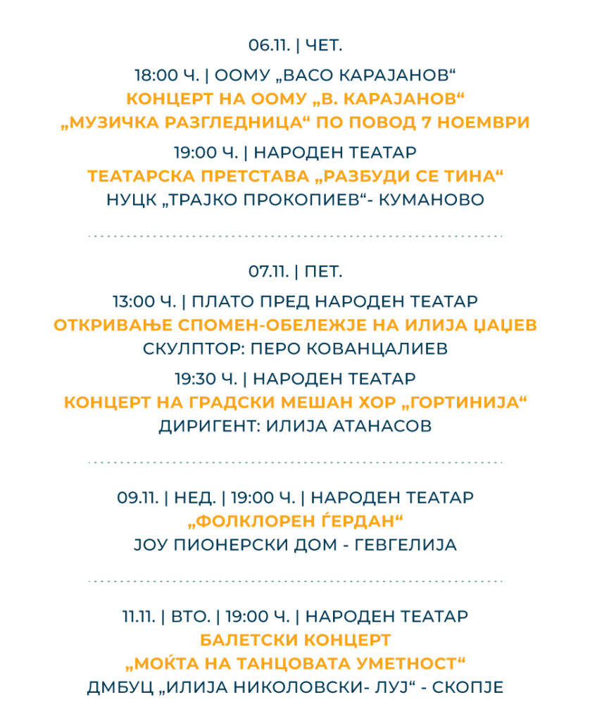 05.11. / СРЕ. / 18:30 Ч. / МЛАДИНСКИ ДОМ- НЕГОРЦИ – 4. МЕМОРИЈАЛЕН ФОЛКЛОРЕН ФЕСТИВАЛ „ИГОР МИЦЕВ“, ЗКУД „НЕГОРЦИ“- НЕГОРЦИ