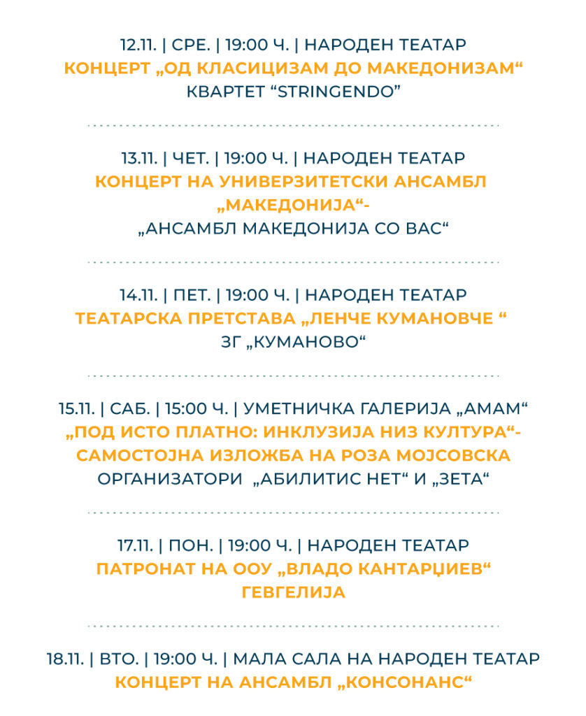 13.11. / ЧЕТ. / 19:00 Ч. / НАРОДЕН ТЕАТАР – КОНЦЕРТ НА УНИВЕРЗИТЕТСКИ АНСАМБЛ „МАКЕДОНИЈА“ – „АНСАМБЛ МАКЕДОНИЈА СО ВАС“