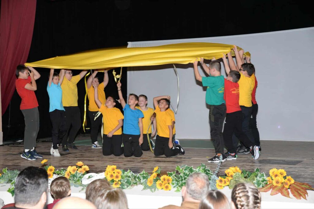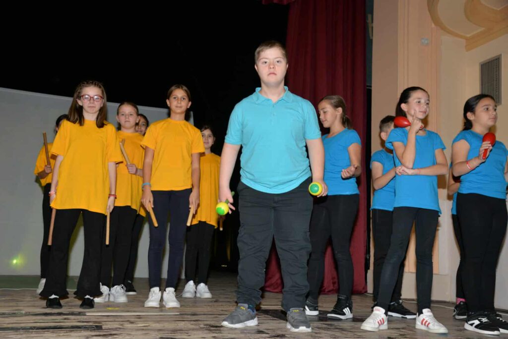 Особена вредност на претставата ѝ дадоа учениците- лица со попреченост, кои рамноправно учествуваа во целокупната изведба. Со нивната вклученост, Училиштето испрати моќна порака за инклузијата како практична, а не само формална вредност. Нивните настапи, исполнети со искреност и вложен труд, беа пречекани со бурни овации, потврдувајќи дека сцената е место за сите, без разлика на предизвиците со кои се соочуваат. Дополнителна магија на вечерта донесе и Училишниот хор, кој настапи со изведба на детски песни. Нивните гласови, нежни и искрени, беа претставени како симбол на чистината, единството и радоста што ја носи детството, заокружувајќи ја сценската приказна и додавајќи уште една боја во мозаикот на претставата. Во публиката беа присутни претставници на локалната власт, претставници на институции, сегашни и поранешни професори, родители и ученици соработници, кои со внимание ги следеа настапите и ја поздравуваа секоја изведба, давајќи дополнителна енергија и поддршка на младите изведувачи.