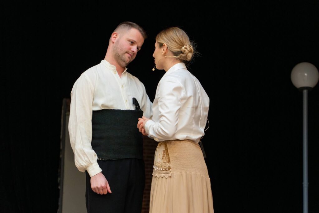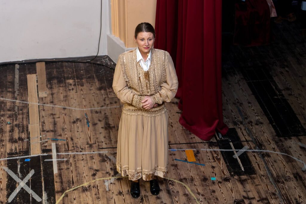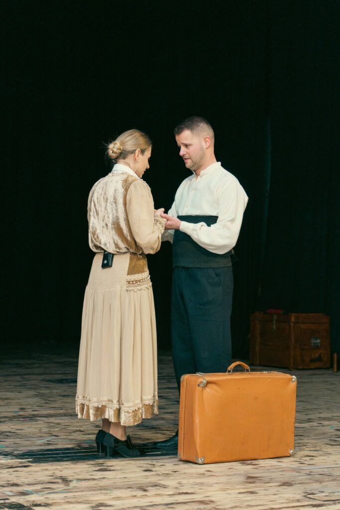 Сценографијата на Гордана Николовска Петрова, инспирирана од традиционалниот амбиент и симболиката на времето, создаде сценски простор кој ненаметливо ја надополнуваше драмската приказна и ѝ даде дополнителна визуелна длабочина на претставата.