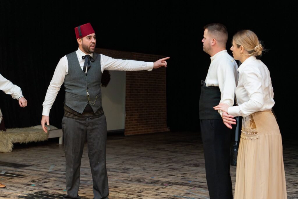 Колективната актерска игра беше еден од најсилните адути на претставата. Учествуваа: Каме Ќаев, Боркица Мурџева, Светлана Стојковиќ, Силвестер Проле, Ангелина Шуклева, Влатко Сапламаев, Мартин Костадинов, Костадин Узунов, Вероника Дојранлиева, Јована Дупарова, Розета Миовска, Катерина Јовановска, Илија Пандев, Матеј Велков, Душко Димитров и Никола Јанковски. Со усогласена и посветена игра, актерите ја понесоа драмската тежина и тематскиот набој на делото, создавајќи една целина во која секој лик доби своја јасна и препознатлива емоционална линија.