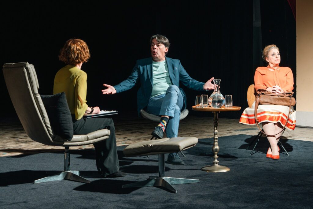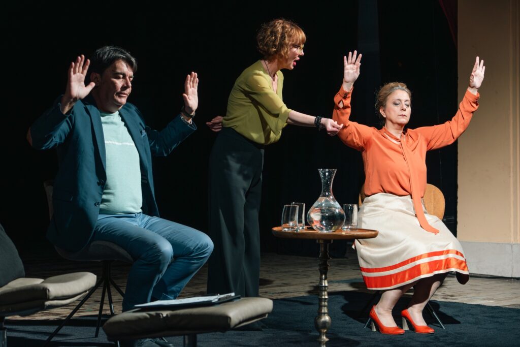 Претставата ја истражува темата за партнерските релации и важноста на искрената комуникација. Предраг Павловски како Валентин, Маја Вељковиќ- Пановска како Јоана и Соња Стамболиоска како терапевт ја покажаа нивната маестрална актерска игра, одразувајќи ги сите емоционални нијанси и предизвици на релациите, правејќи ги ликовите искрено човечки и типични за скоро секој брачен пар. Со ненаметлив хумор и убедливи емоционални сцени во театарската сеанса, тие прикажаа комплексни чувства- од ситни недоразбирања и кратки кавги до моменти на обид за разбирање, блискост и повторно поврзување. Комичното откритие на самиот крај дека и терапевтката се соочува со предизвици слични на оние на клиентот, додава иронија, потврдувајќи дека професионалноста не гарантира совршен личен (брачен) живот.