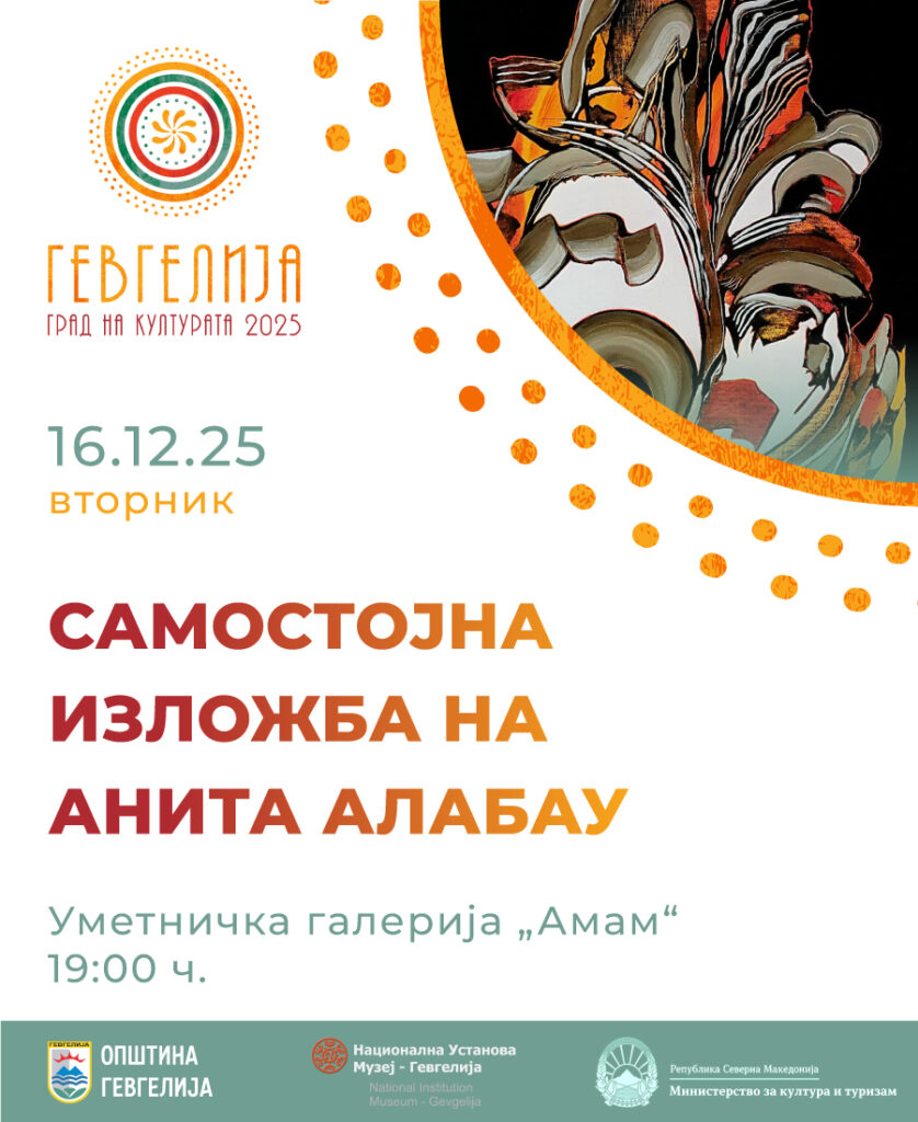 На 16 декември 2025 година (вторник), во Уметничката галерија „Амам“ во Гевгелија, со почеток во 19:00 часот, ќе биде отворена самостојната изложба на Анита Алабау, насловена „Хроматско патување“. Изложбата се реализира во организација на ЈОУ Дом на култура „Македонија“- Гевгелија и соработка со НУ Музеј- Гевгелија, во рамките на програмата „Гевгелија град на културата за 2025 година“.