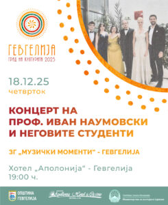 Во рамките на манифестацијата „Гевгелија град на културата за 2025 година“, вечерва (18 декември 2025 година), во хотелот „Аполонија“- Гевгелија, со почеток во 19:00 часот,
